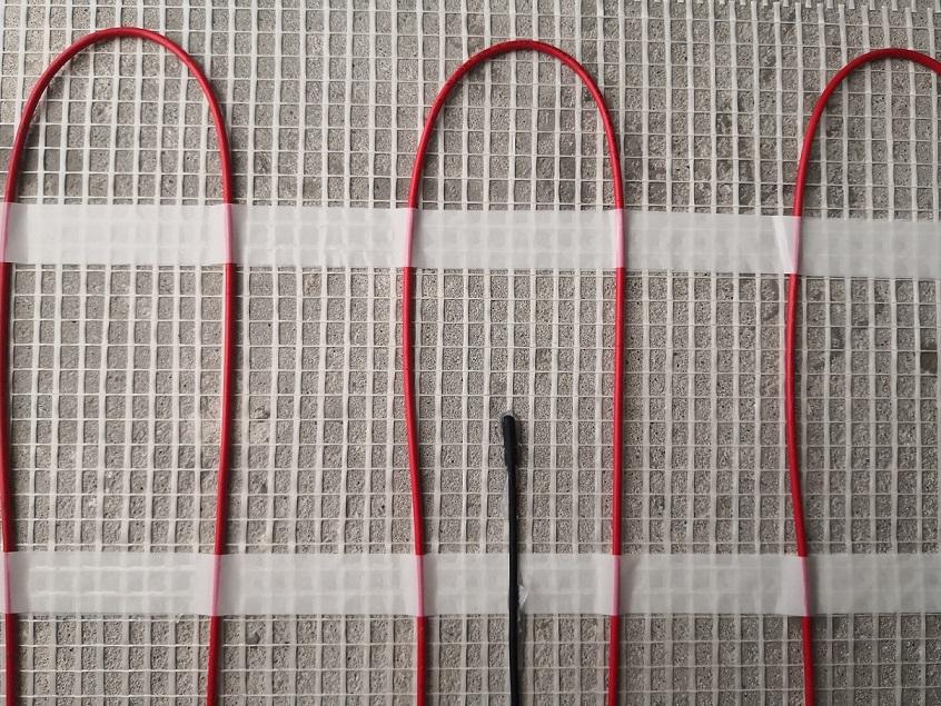 Pri pokládke vykurovacích vodičov alebo rohoží sa podlahová sonda umiestní do stredu medzi vykurovacie vodiče tak, aby sa ich nedotýkala. Podlahová sonda sa položí minimálne 50 cm do priestoru od steny miestností.