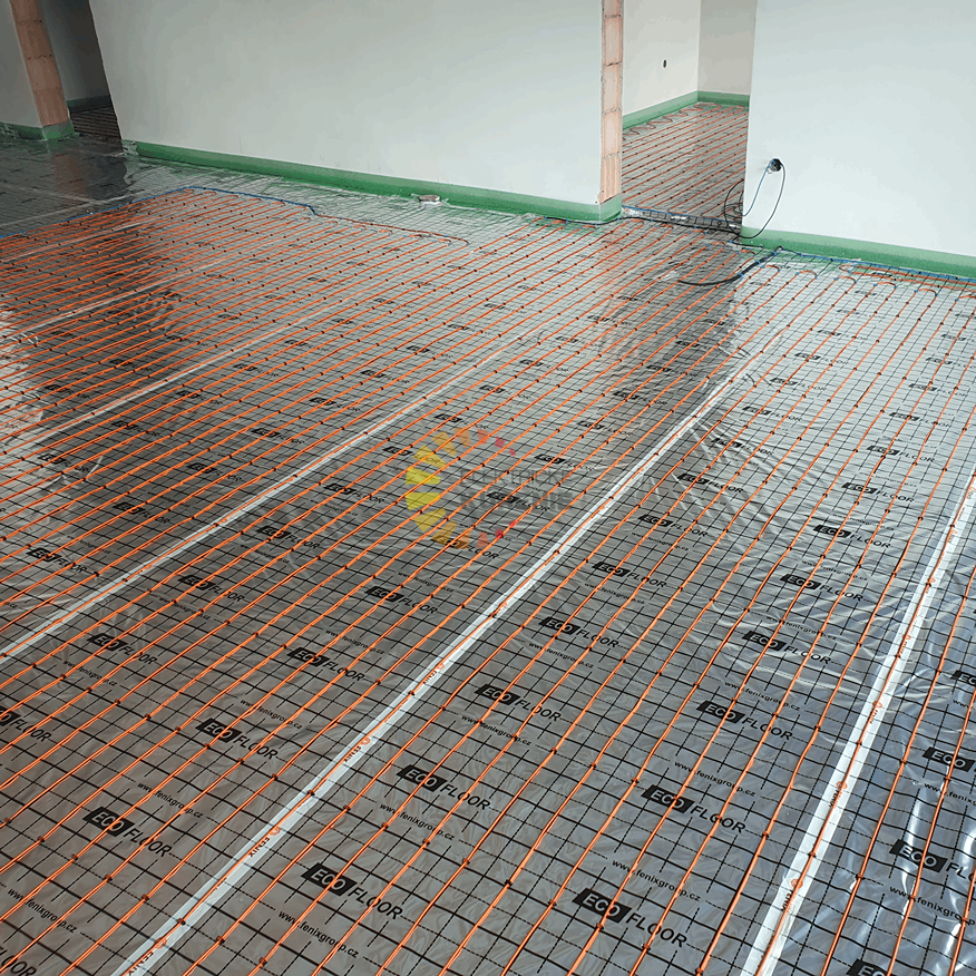 Po uložení vykurovacích káblov sa systém skontroluje a následne sa zaleje vhodnou vrstvou (napr. anhydrit alebo betón).